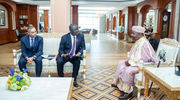 Ali Bongo a reçu ce mardi en audience Messieurs Giovanni Vincenzo Infantino ; Stephen Jackson et ...