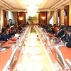 Après son arrivée dans la capitale marigovéenne, le chef de l’Etat s’est rendu à la Base Navale en sa qualité de chef suprême des Forces de défense et de sécurité où il a échangé avec les responsables de la Marine nationale. Il a ensuite effectué la visite du Centre multisectoriel de formation et d’enseignement professionnel de Ntchengue, qui comme ceux de Nkok et de Mvengue, accueillera très prochainement les jeunes gabonais.
