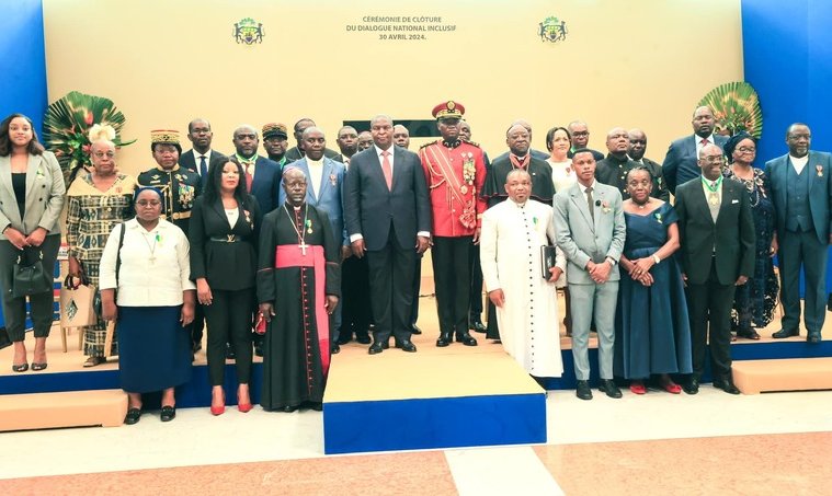 Cette journée solennelle a été marquée par plusieurs moments forts, notamment la lecture concise des conclusions des travaux et la remise symbolique du rapport général au Chef de l’État. En reconnaissance de leur leadership dans la conduite réussie de ces assises, le Grand Maître des Ordres Nationaux a également honoré les membres du bureau du Dialogue National Inclusif avec des médailles de l’Ordre National du Mérite Gabonais et de l’Ordre National de l’Étoile Equatoriale.
