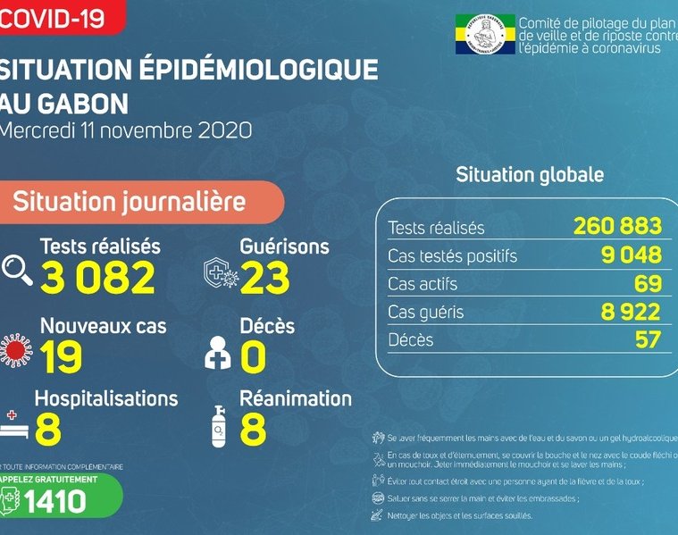 Gabon Matin vous livre le point journalier du Comité de pilotage du plan de veille et de riposte contre l’épidémie à Coronavirus au Gabon du 11 novembre 2020.
