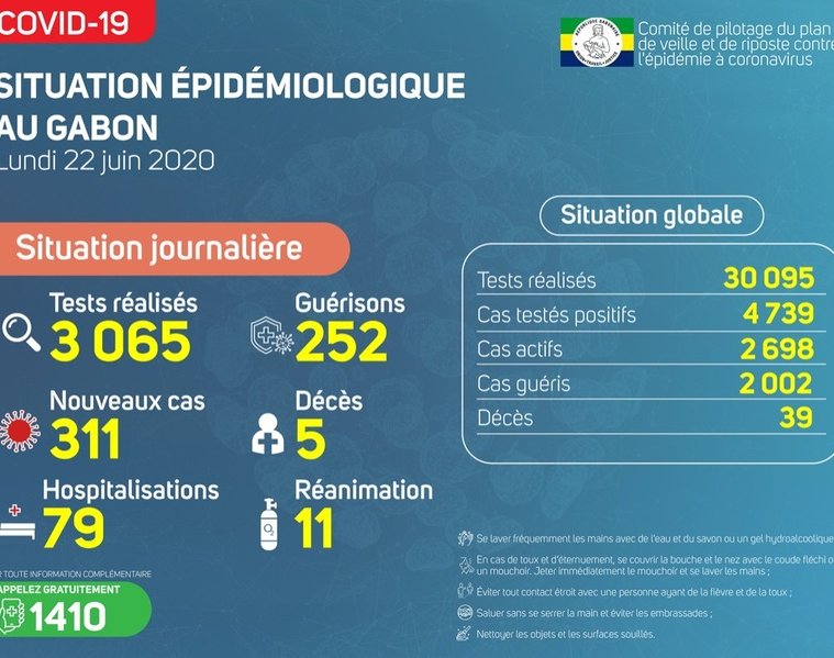 Gabon Matin vous livre le point journalier du Comité de pilotage du plan de veille et de riposte contre l’épidémie à Coronavirus au Gabon du 22 juin 2020.