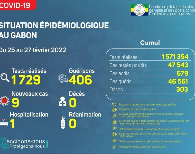 Coronavirus au Gabon : point journalier du 27 février 2022