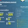 • Estuaire : 01 nouveau cas positif sur 1 332 prélèvements à Libreville, soit un total de 34 756 cas confirmés ;