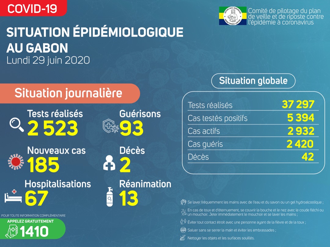 Coronavirus au Gabon : point journalier du 29 juin 2020