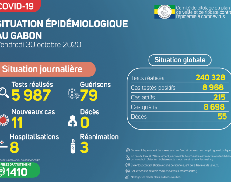Coronavirus au Gabon : point journalier du 30 octobre 2020