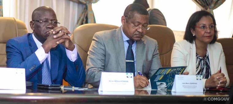 Le Premier ministre, Julien Nkoghe Bekale a présidé ce jour à la cérémonie officielle de signature de la convention de financement du programme « Cap sur l’autonomisation des jeunes au Gabon » entre l’État gabonais et l’Union européenne et paraphé pour les deux parties par le ministre de l’Économie, Roger Owono Mba et l’ambassadeur de l’Union européenne au Gabon, Sao Tomé et Principe et CEEAC, Rosario Bento Pais.